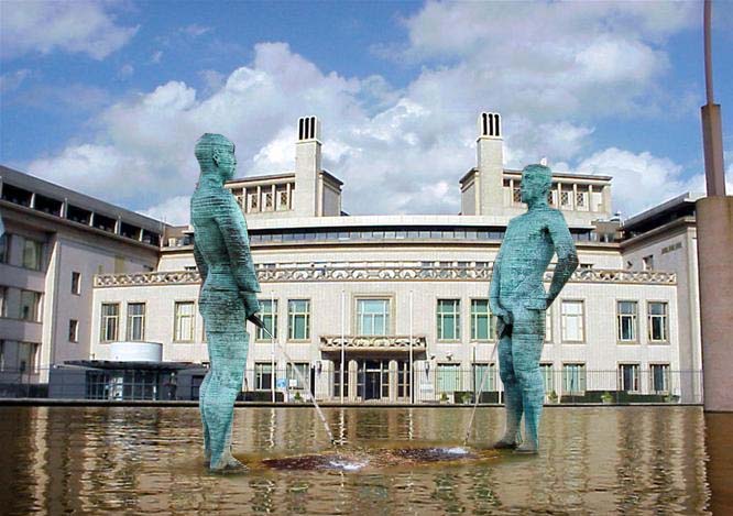Nakon govora Tomislava Nikolića na debati u UN o Haškom tribunalu koju je organizovao Vuk Jeremić, ispred Haškog tribunala postavljena nova fontana