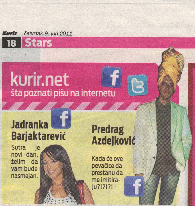 Predrag Azdejković: Kada će ove pevačice da prestanu da me imitiraju?!?!?! ShareTweetSharePin0 Shares Posted: 09/06/201103/03/2013 by admin Category: Press clipping Tags: 2011, Kurir Previous Post Next Post